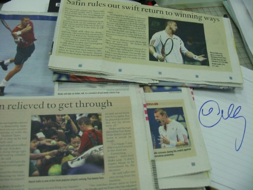 關心則亂啊。雖然很希望Marat能在曼谷順利過關斬將,但看了三場他都是要命玩三盤的單打,心裡很明白其實目前Marat並未回到最佳狀態,除了關鍵時刻的發球還行,他的網前不行、正反手失誤太多、吊高球也屢試屢敗,連他自己都常忍不住沮喪得搖頭或是氣得抓狂吶喊,當然他也摔拍但所幸他堅持到底~而且始終堅持,想贏球的企圖心讓他並未輕言放棄。他率性依舊但確實多了幾分成熟,這讓我對他重返巔峰始終還抱持信心,別急…Marat你一定很快就會回來,因為我見證了你已經在往回歸的路上前進,也許就在06年底的這個歐洲室內賽季,我真的不急、我真的相信。