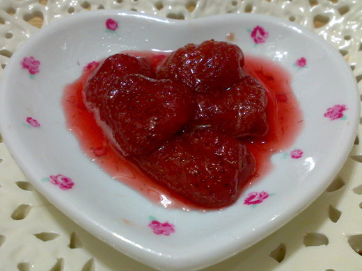 作法大致相同,只是心想,草莓不耐煮,所以煮草莓的時間該縮短,只讓醬汁熬久一些