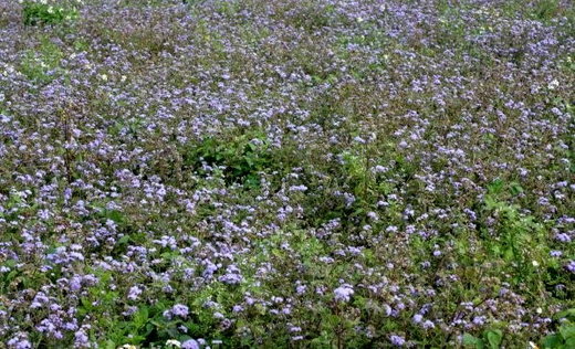 頂著豔陽繞行田間小路,發現晚春的美濃鄉村田園裡,波斯菊已凋謝,在荒蕪的農田裡,取而代之的是紫花霍香薊這種野花,用數大便是美的戰略密長,相較於日本北海道大片薰衣草花田營造的紫花夢幻,這樣渾然天成的野性美別具另類風情,在美濃,你也能找到紫色浪漫喔,何妨走一趟!.