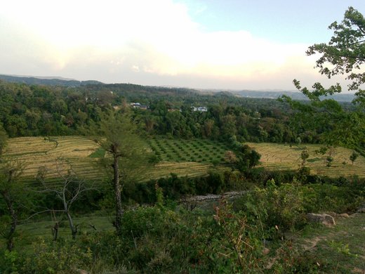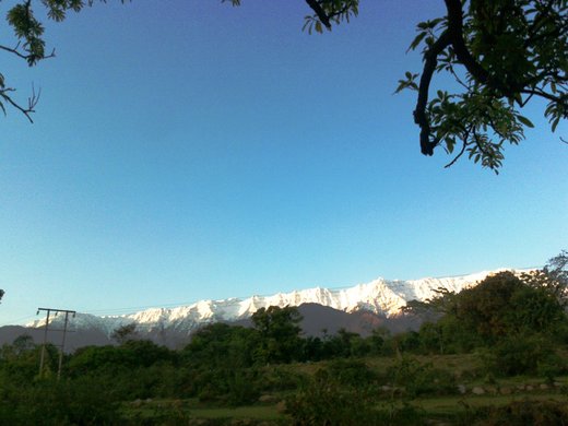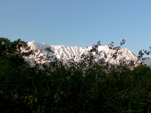 一片廣闊的台地在路的盡頭躍入眼前,沒有防備的與美景瞬間偶遇,連驚呼都忘了的我,不知呆立多久才回過神來,看著背後似乎垂手可及的喜瑪拉雅山和前方遍植小麥的縱谷,我彷彿置身於在由天空、雪山、草原、麥田以寶藍、雪白、翠綠、金黃四大色系層次分明構圖而成的人間仙境中,此刻,我竟只能無言的潸然淚下。