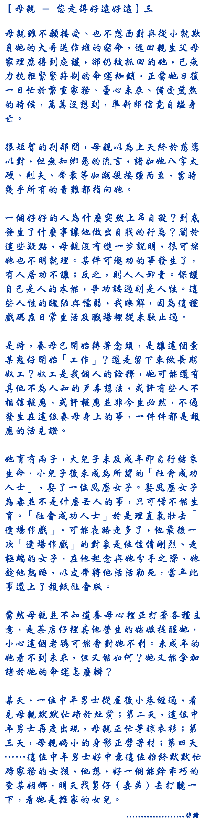 【母親 - 您走得好遠好遠】三