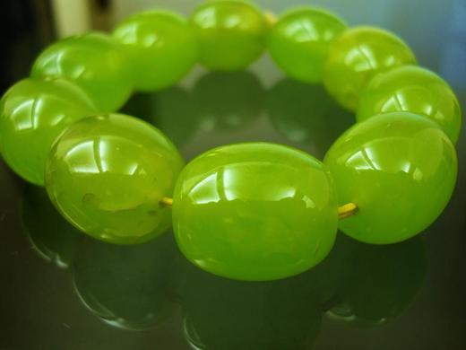 最近收藏到一串天然綠琥珀手珠
