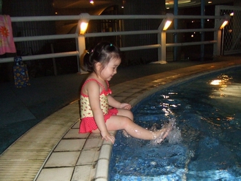 媽咪說: 只是想要讓Wing不要怕水,玩一玩就好了~~