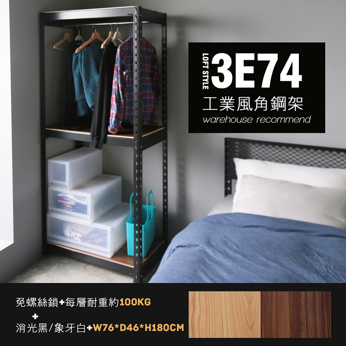 - 安裝簡單,免用螺絲 角鋼骨架,堅穩耐用 工業風情,獨特品味