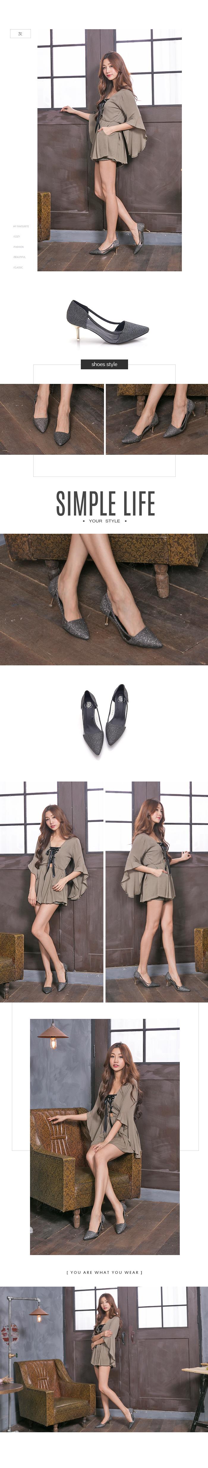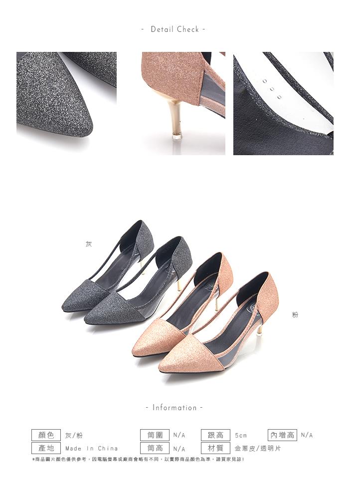 【88%】時尚設計感 金蔥皮革 透氣透明片 尖頭包鞋細跟中跟5cm評價