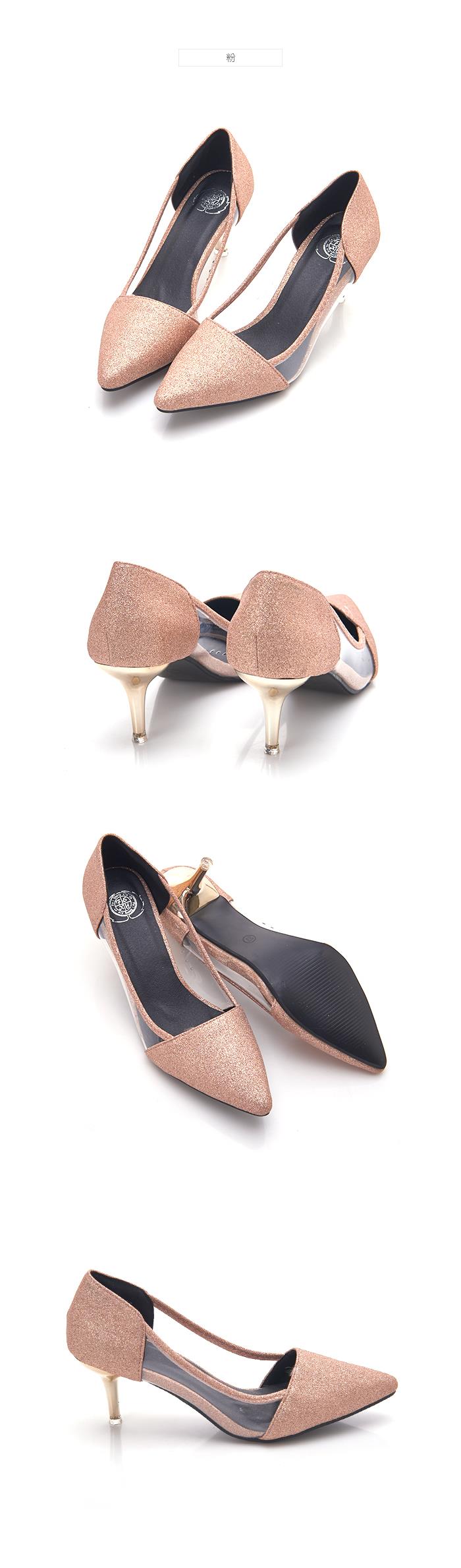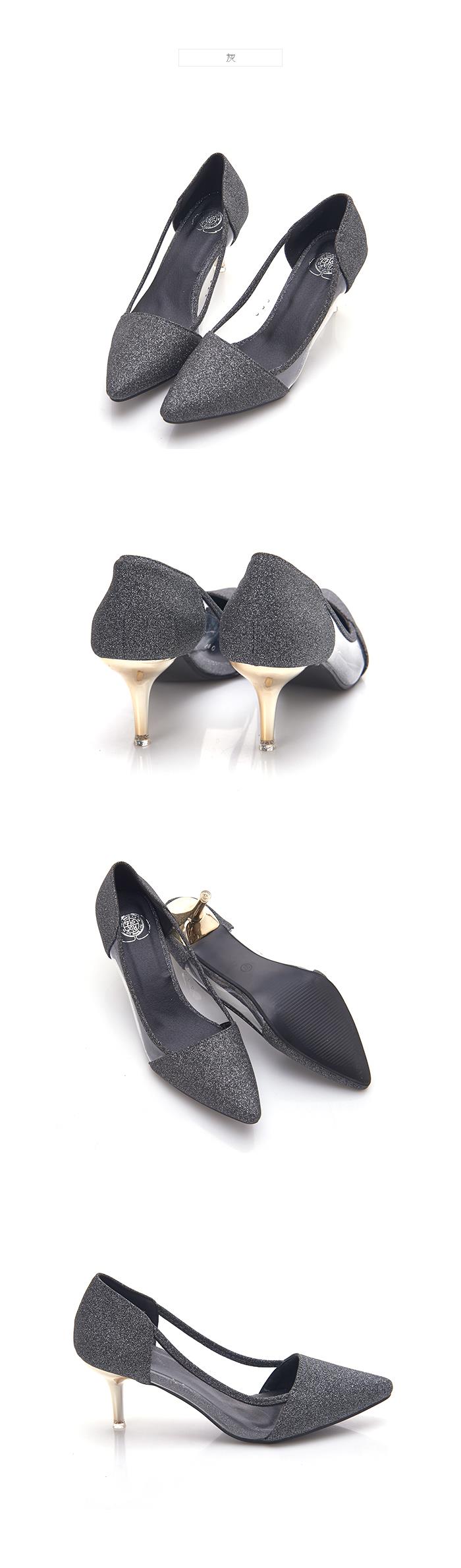 【88%】時尚設計感 金蔥皮革 透氣透明片 尖頭包鞋細跟中跟5cm網路人氣商品