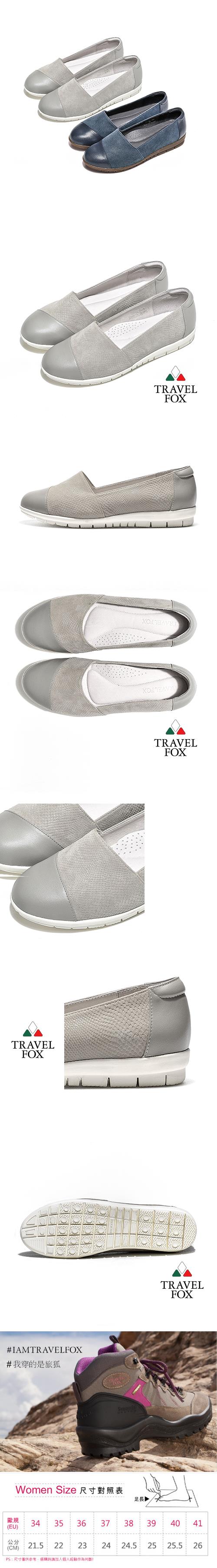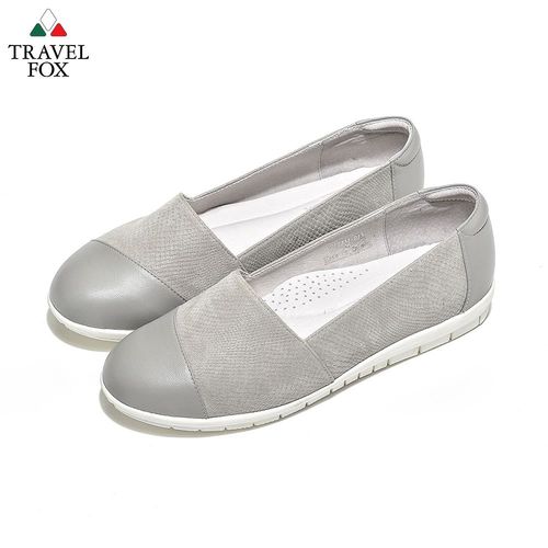 Travel Fox(女) - 極簡優雅 雙料融合羊皮直套旅狐休閒鞋 - 灰白網購