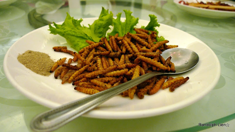 炸竹蟲,哈!應該不少女性看到這菜餚會嚇得花容失色吧?竹蟲乃生長於竹節的蟲子,拿來油炸後,口感就猶如蝦味先一般,當然請不要過度注意該食物的「細節」。