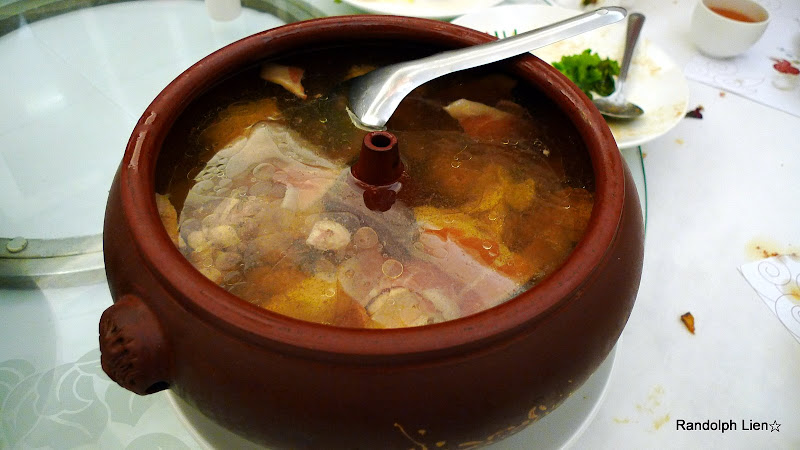 汽鍋雞,這是該店唯一要預定的,此乃雲南名菜之一,相傳在清朝乾隆年間就有該道菜餚,不過當時作法簡單而不似現在越來越多花樣。不過汽鍋雞仍較其他菜系的雞湯簡單多了,一般只以生薑胡椒食鹽加上中藥的田七、蟲草和天麻等等,與母雞熬煮一段時間之後就好了。但人和園的汽鍋雞還加上了火腿片,似乎是為了增加湯頭鮮美吧?