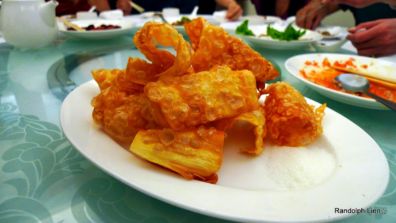 鍋貼烏魚,據說這也是雲貴一帶的菜餚,而此烏魚並非台灣漁民口中說的烏魚,而是大陸到處都有的一種淡水魚,又稱黑魚。說來這菜的作法稍微繁複了些,但在嘴裡卻像是鋪著火腿片的烤土司,魚肉味道整個被蓋了過去。怎會這樣?頗覺得奇怪了些。(正宗作法應該是肥膘肉片與魚肉片醃過夾在一起,稍微煎過後再放上火腿肉,但是這裡肥膘肉片似乎變成了土司....)