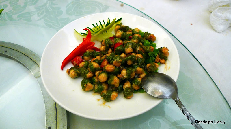涼拌萵筍,這是個開胃涼拌菜,萵筍其實就是與一般人常吃的萵苣同種類,只不過萵苣取其葉子食用,萵筍則取其莖食用。該菜餚清淡爽口,不過份量實在少了些,餐廳說是給我們中等份量,但是我們十一人每人夾一口就沒了.....