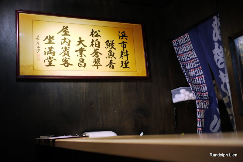 吧台後方電視放的都是高畫質NHK節目,左邊玻璃後面就是燒烤鰻魚的廚房,日籍老闆總是親自負責燒烤鰻魚。