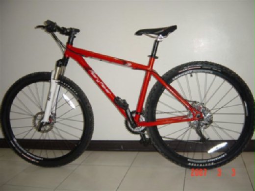 果然,昨晚得知朋友幫我弄到了一台Gary Fisher的X-Caliber,代價算是在可負擔的範圍內(美國零售價約在1000美元左右,出口成本價當然便宜多了),只是顏色是帶點橘色的炫紅色!