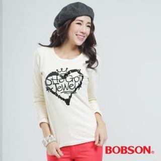 【BOBSON】亮片心型圖案上衣(米白30075-31) 售價:790