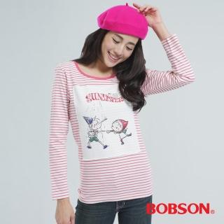 【BOBSON】印圖.條紋上衣(粉紅33095-10) 售價:790