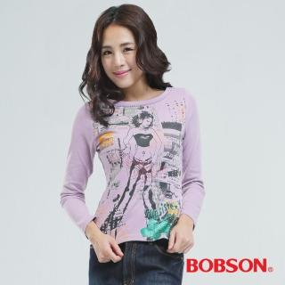 我要購買 經典印圖極佳,展現質感休閒版型,簡單穿搭風格舒適自在,完美肌膚享受 |  【BOBSON】印圖個性女郎T恤(紫色65074-61) 售價:990