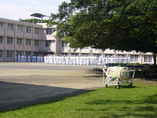 記得新訓第一次指揮官校閱,也穿著照片上所看到的白柄,高雄的大太陽下挺胸立正手貼緊兩小時,不到一小時倒的倒,軟的軟...,我是沒倒,只感覺手貼的很酸,還是老話一句,只有海軍陸戰隊才是真正在當兵。正在外島當兵的弟弟,打電話說:島內的兵在做什麼,倒的倒,什麼叫當兵來島就知道,底溫下打實彈,操演~還是操演,今晚弟弟說他們那邊白天量出來是6度...