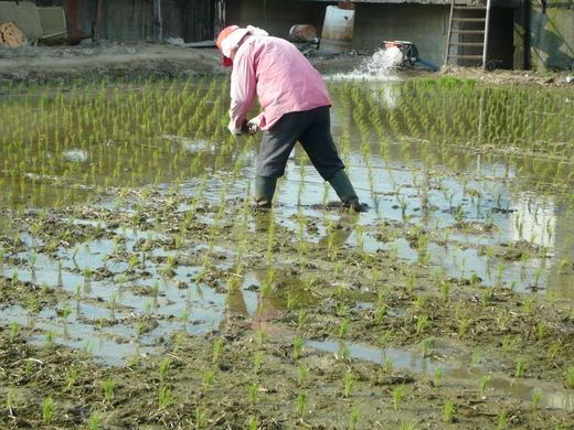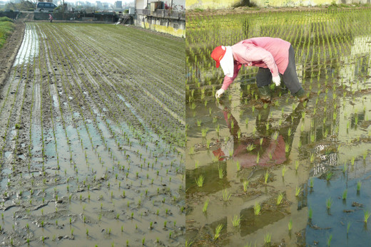 中圖:要在有水的地方做插秧、拔草比較恰當。