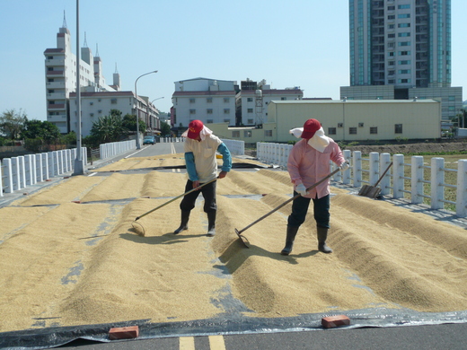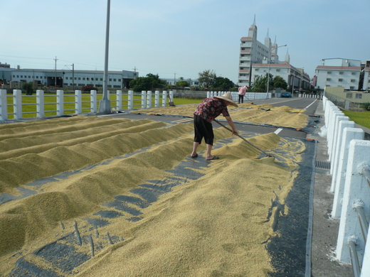 2011年第一期稻穀,曬了約一萬公斤(一萬六千多台斤)的濕穀,花了整整五天的時間,感謝老天爺都沒有下雨,白天一直出大太陽,曬稻穀紀錄有限,因人手不足,五天下來都累壞了,曬稻穀只有奶奶、爸爸、媽媽、我四人,奶奶已八十歲,所以就請奶奶技術指導不方便長時間曬稻穀,奶奶以前的專業是曬稻穀,技術上無人可比,是斑馬的老師,接下來就介紹曬稻穀流程。