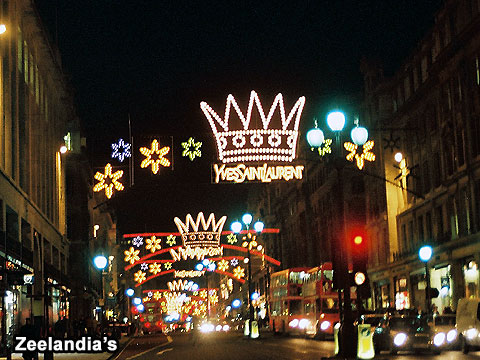 附圖: 倫敦著名的敗家街之一Regent Street耶誕裝飾.
