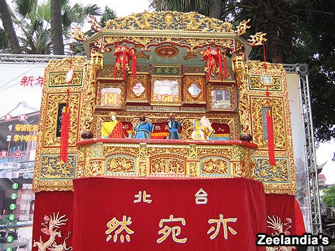 山腳下的廟埕前搭了布袋戲臺, 想起大年初五帶老人家到板橋林家花園走春, 踫巧園方請來「亦宛然」演出「西遊記火雲洞」.