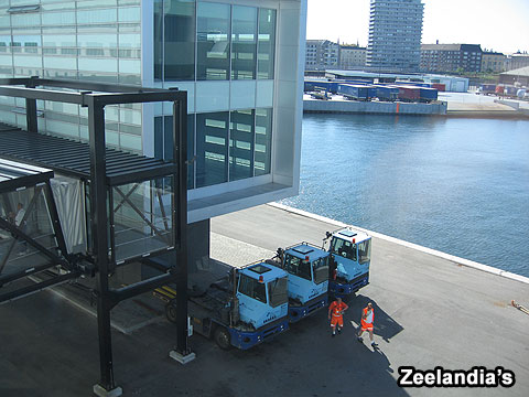 豪華郵輪也有不豪華的地方. 上船前, 輪船公司有免費接駁專車從市中心送到碼頭; 下船的話, 旅行團有巴士接駁到市中心, 自助客則得自掏腰包搭公車.