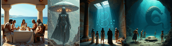五個人通過海底通道到達位於克里特島東方的克索斯深淵,飛碟的深海基地。