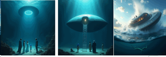 巨蛇纏繞飛碟,剎時將整個飛碟拉出浮游在海水中。