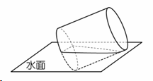 有一底面半徑為4公分的圓柱體,傾斜漂浮在靜止的水面上。