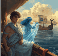 畢達哥拉斯立於甲板,雙手扶著船舷,目光越過微光中的波濤。