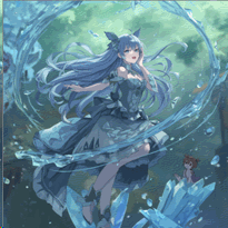 水精靈優媞婭帶著狡黠的笑容現身,長髮如流水般波動。