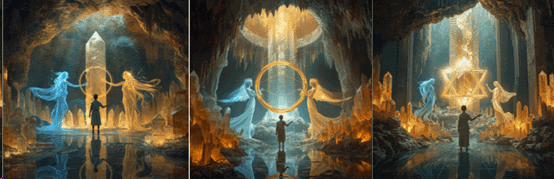 當畢達哥拉斯的指尖劃過某段晶稜時,水晶內的能量與畢達哥拉斯體內真炁呼應,整座洞穴突然嗡鳴迴盪。