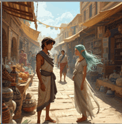 他們在市場深處遇到一位友善的本地商人,名叫哈麥西斯,膚色深沉,眼底透著尼羅河水一般的靜穩。