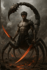 阿克-薩雷斯靠得更近,他的蠍尾在空中緩緩盤旋,滴落的黑水卻停留在半空,如凝固的夜色。