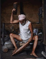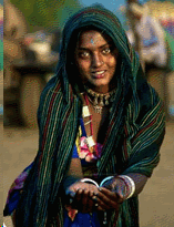 只是一塊舊布披在肩上,露出曬黑而乾瘦的手臂。