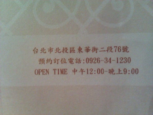 地址:台北市北投區東華街二段76號 (近捷運石牌站,陽明大學)
