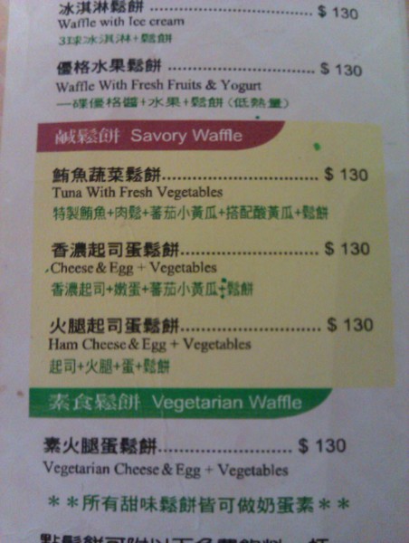 價位都是130元 附上一杯冰紅茶或熱紅茶(棒吧!)