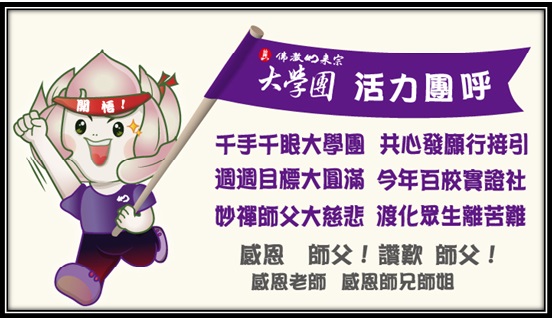 妙禪師父慈悲開示,「大學團為本門之寶!」透過如來實證社在各校向下扎根,向上成長,必能早日「佛子滿校園」,將來必然有弟子能在年輕時就成就佛道,有最長時間利益十方眾生,讓如來正法法脈代代盛傳!實踐 妙禪師父法偈中慈悲開示「佛子滿天下 聖花佛果實」!