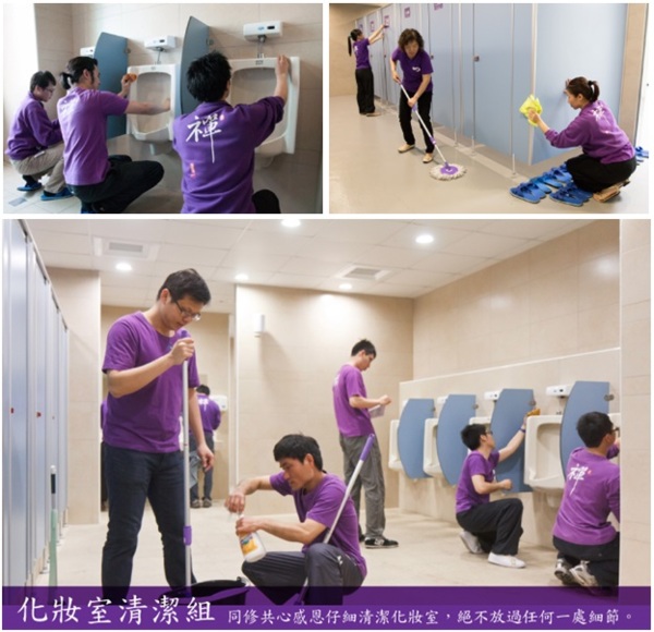 化妝室清潔組的師兄姐清楚明白,他們掃除的是現象界的髒污,但我們靈性宿世累劫的髒污,是 妙禪師父一一為我們清淨渡化。 師父期盼每個弟子都能早日通過如來法則,成就佛道,讓無邊無量的靈性清淨無染,而我們在護持明師的淨土之餘,也唯有依教奉行,真正一世成佛,才是最圓滿的護持明師、護持正法。 感恩師父 讚歎師父!