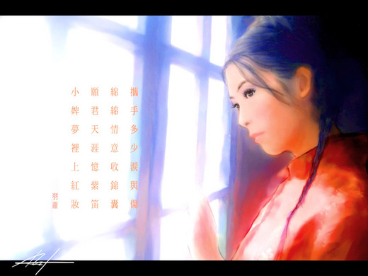 願君天涯憶紫笛,小婢夢裡上紅妝。