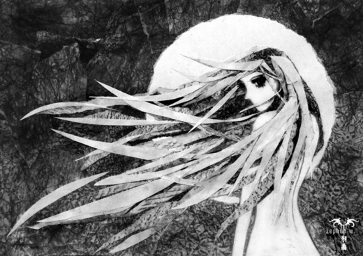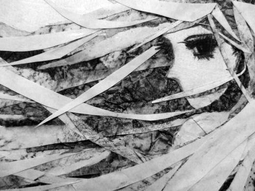 此圖為剪貼拼圖,所有的物件都是以剪貼完成的,成功表現出長髮飛揚與重疊的感覺。
