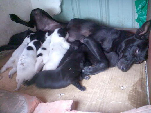 九月十八日颱風夜凌晨,流浪小黑在我工作處附近的草叢裡產下十隻寶寶,在周小姐愛心及耐心的照顧餵養下,每隻小小狗都健康又活潑,目前都已經能自己進食狗糧。