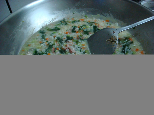 【3】起鍋前加入芹菜末 ( 變成美味什錦粥 )