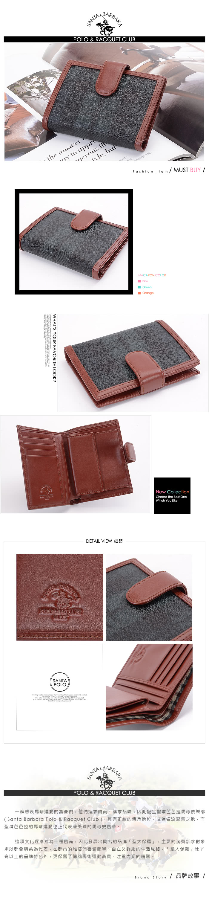 【SANTA BARBARA POLO】經典綠格系列-直式零錢袋短夾(SB38-05207)詳細說明: