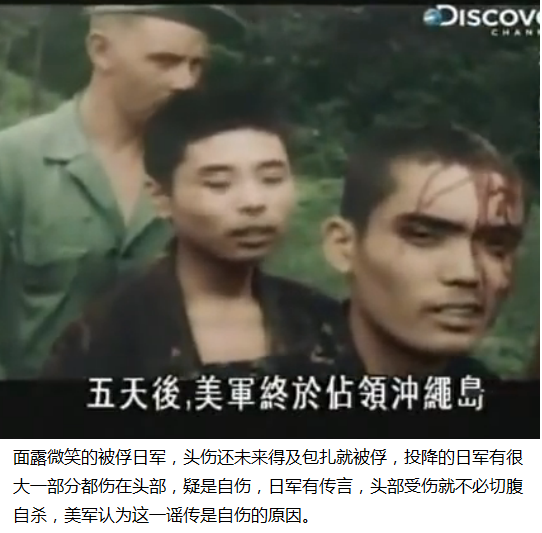 苟活是人的天性,上有政策下有對策,日軍中盛傳,只要頭部受傷(眼被血遮蔽?)就可投降不必切腹。 向美軍投降的日本兵,據統計,85%以上的傷處都在頭部,美軍醫檢驗後發現,傷口大多在額頭,由傷口看,幾乎都是被硬物擊傷,甚至有人並沒有傷口,只是裹上厚厚骯髒的繃帶而已。