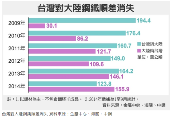 看二岸的鋼鐵貿易,年年都是台灣有順差,2014有了逆差,台灣就要大陸自制,那以前年年的順差,而且金額是如此的大,怎自己不自制呢?台灣吃定了大陸嗎?