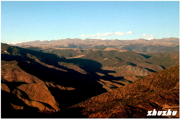 陽光漸漸變弱,尚未翻越紅拉山,但日頭已斜,樹影越拉越長,內心的擔憂也越來越強;單人單車通行在懸崖峭壁間的滇藏公路之上,經不起夜暗任何的萬一!必須要加快速度才行,走不多時就開始翻越紅拉山;搓板山路盤旋上升,看看山路邊的紅色土壤,想必就是紅拉山名字得來的緣由吧!經過紅拉山,總幻想著這紅色的土壤覆蓋的大山內,有一座地下宮殿,裏面住著無比美麗的女神,而山腳的叢林、山頂的灌木,都是女神的青色長髮和微微汗毛。