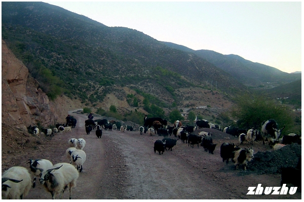 高山草甸風光漸漸呈現在車窗之外,落日的天空仿佛低了,視野迷濛;藏族房屋散落高草上,成群結隊的犛牛、羊群在草地上悠閒吃草,坐在駕駛座的上身,隨車身搖晃,眼睛卻被車外景色迷住,思緒隨之飄在外面的世界去遊蕩撒歡。繼續向前,中途遇到了趕著羊群的藏民,微笑著彼此問候-札西德勒。此後的路上,當自己疲憊且落寞的時候,總會有淳樸的藏民或者驢友送上同樣的祝福,重新充滿力量。更多的時候,孤獨的旅途,鼓勵和勇氣,只有自己能給。