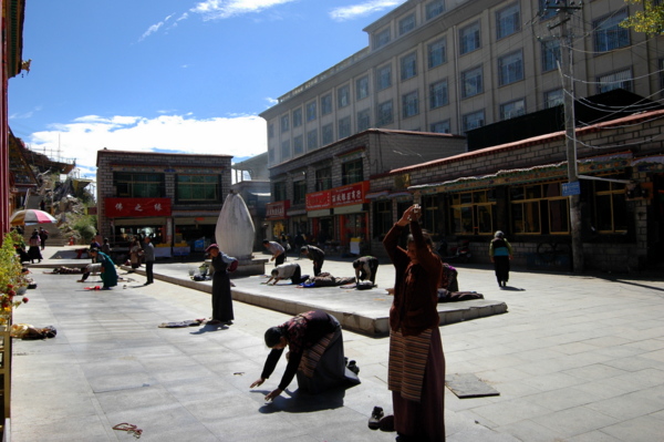 在拉薩的很多地方都可以仰望布達拉宮,但唯有在藥王山,可以最真實的感受到人心與神殿之間的距離,這一段距離非常近,可以真實體會這份「虔誠」。如果第一次來拉薩,可以走一趟「林廓」轉經,這條線路經過大昭寺、小昭寺,穿過老城區,最後布達拉宮轉一圈,需走2到3個小時。拉薩城區已由50年代初不到3平方公里,發展到如今近60平方公里,高低起伏的的街區覆蓋原先的河谷和樹林,形成了新的轉經道,而千佛崖這條碎石鋪成的小路還保持了原始的風貌。