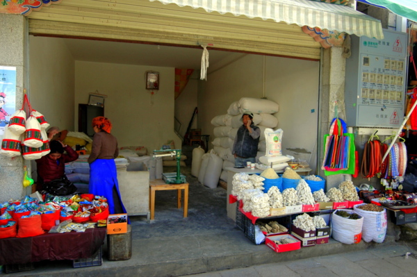 小昭寺旁是次巴拉康寺,路邊有許多藏族人在賣桑草,寺前煨桑台冒著青煙(焚香祭祀是多種祭祀中的一種,藏人謂之「煨桑」,就是煙祭。「桑」是藏語的音譯,其意「煙」或「煙火」。至於「煨桑」,較確切的譯法應是「煙火祭祀」或譯為「煙祭」。佛經上說,神靈是不食人間煙火的,只要聞到桑煙之香味便宛如赴宴,藏語稱其為「智薩」(即食味)。所以僧俗民眾總是到寺院、山頂煨桑祭神,給神靈以美味,給自己精神解脫。煨桑材料有扁柏、小葉杜鵑、艾、青松、糌粑等物品。